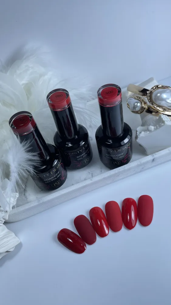 Pour la saison de Noël, nous avons aussi introduit de nouvelles nuances de rouge, idéales pour une manucure festive, élégante et séduisante.